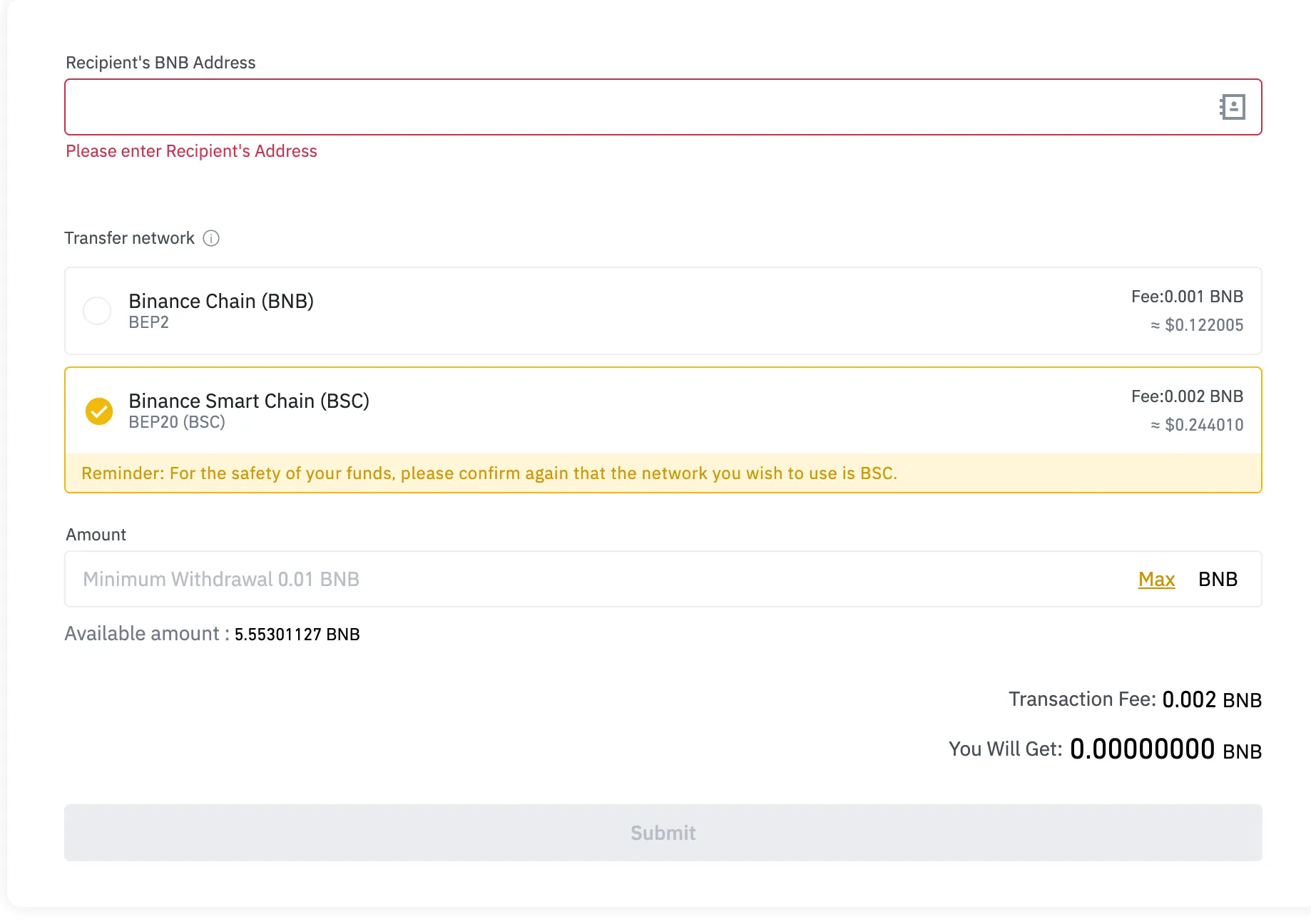 Here, you’ll want to keep in mind that once you’re on the Binance side of things, you’ll need to pay for transactions with BNB like how you pay for Ethereum transactions with Eth. The easiest place to acquire BNB is through Binance itself. You’ll also want to remember that BNB as a BEP-2 and BNB as a BEP-20 are two different things. Keep in mind which network you’re trying to deal with when trading for tokens accordingly.