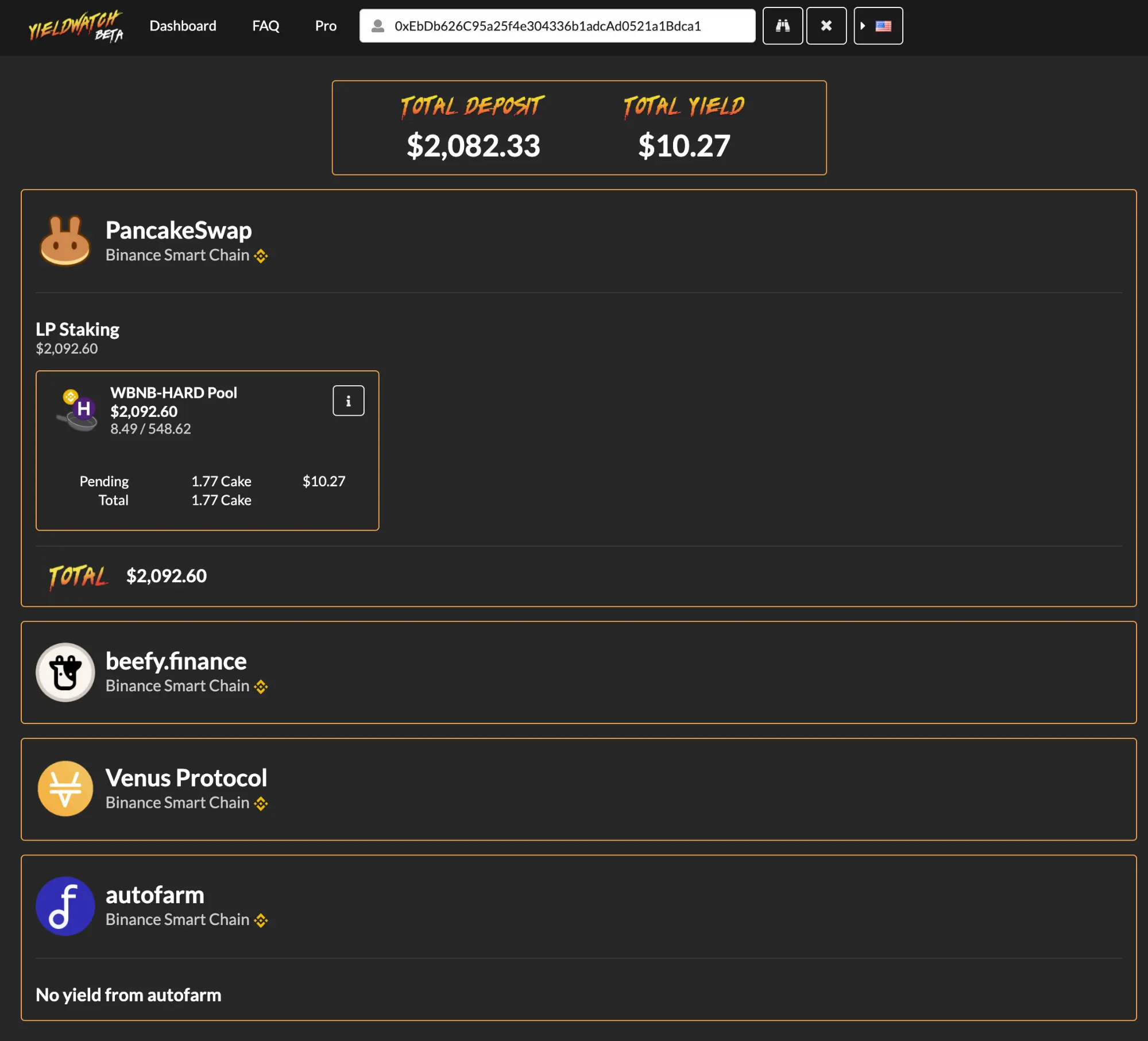 For BSC, then, there’s a Zapper fork worth noting called yieldwatch! This site is still really young so it focuses only on BSC yield farms for now. As time goes on, look for the project to open up and start tracking more kinds of BSC-related activities.