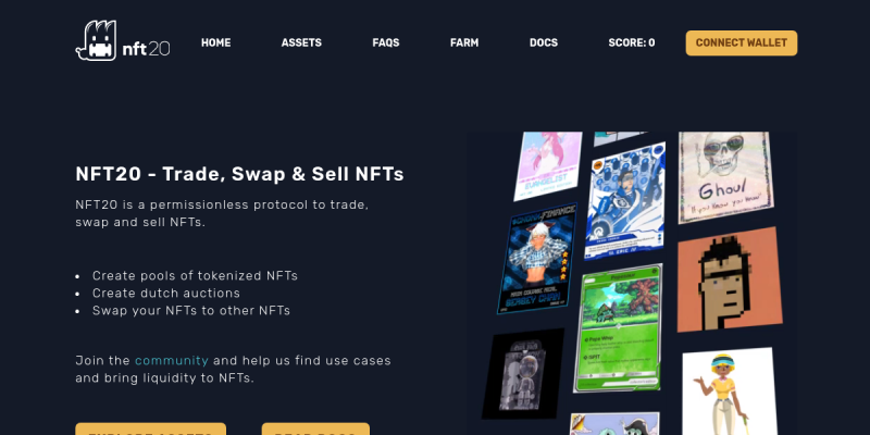 NFT20 is a permissionless protocol enabling trade, swap and sell NFTs that tokenized at indices pools.
