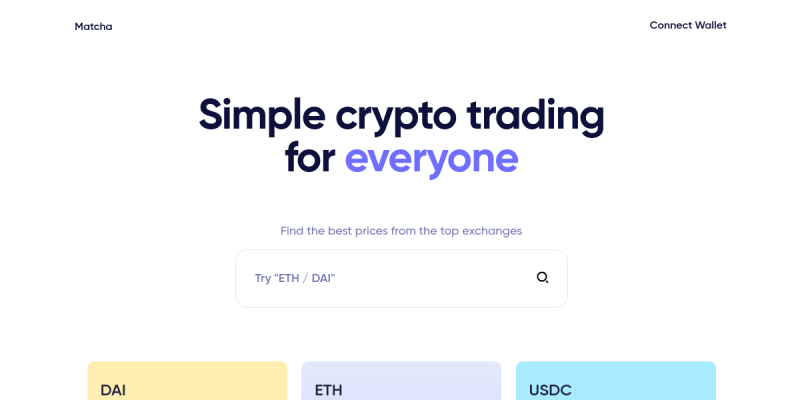 Matcha is a crypto trading platform with smart order routing powered by 0x. Matcha aggregates liquidity from multiple sources, including 0x, Kyber, Uniswap, Oasis, Curve, and others. Matcha Alternatives