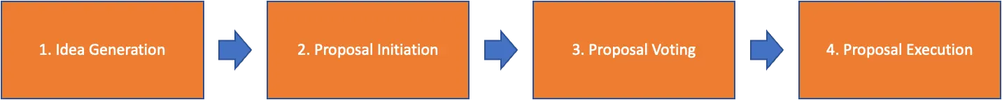Participants of Decentralized Autonomous Organizations realize the right to govern the project through proposals. Breaking down the typical process into steps gives us a better understanding of how the majority of organizations operate: