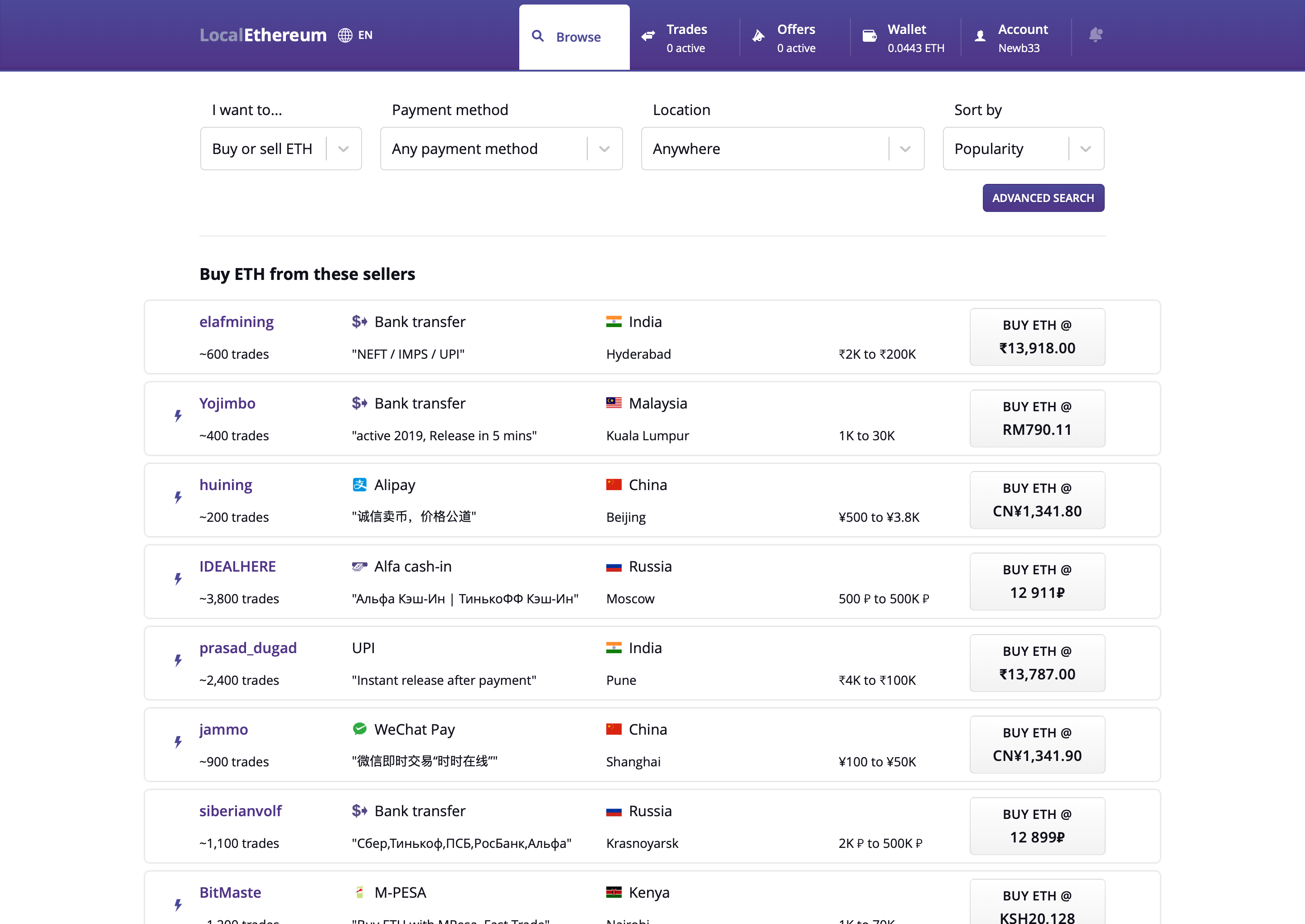 When somebody wants to buy or sell ETH, they come to LocalEthereum, enter their preferred payment method, the amount they’d like to exchange, which fiat currency they want to swap, and where in the world they’re located. They match themselves with another trader who fits those parameters, then conduct a peer-to-peer exchange.